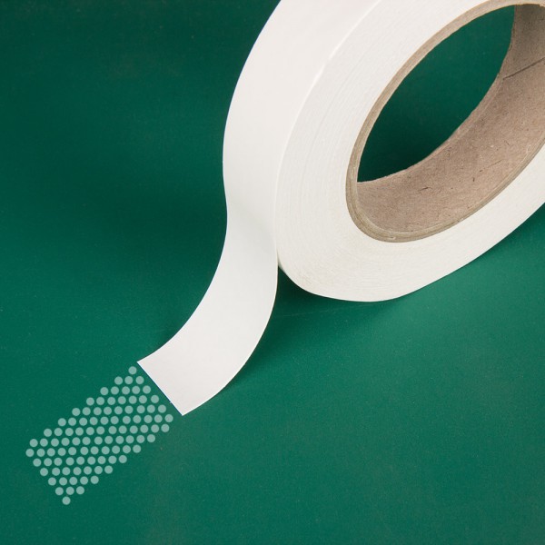Oboustranně lepící fólie, 98 mikronů silná, transparentní, s bodovým (easy dot®-transfer technologie) akrylátovým lepidlem na vodní bázi.